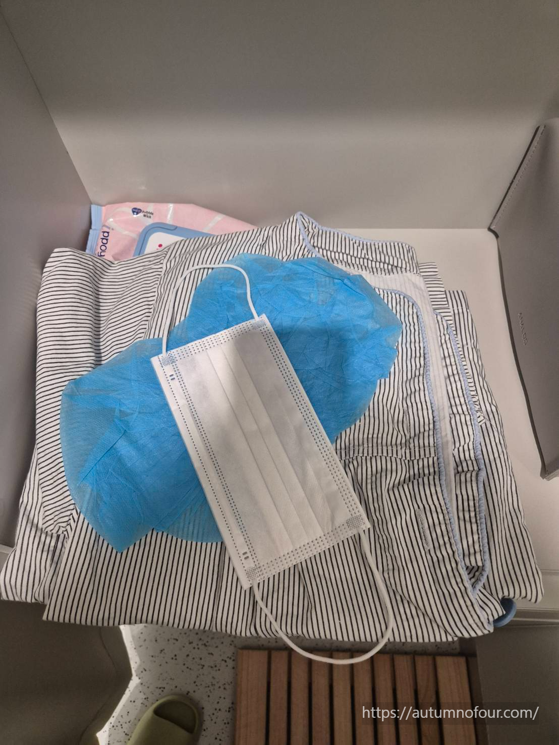 탈의실에 들어가서 하나하나 설명해주셔서, 말씀하신대로 수술복을 갈아입고 마스크와 헤어캡도 썼다.