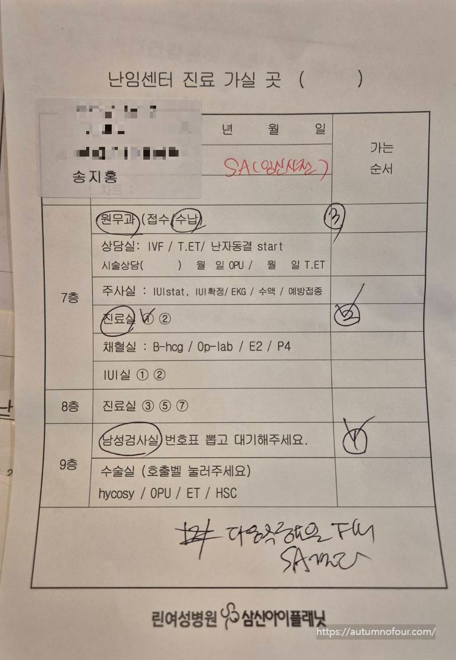9. 나의 나팔관조영술도, 남편의 정자검사도 완료 후 다시 7층으로가서 원장님과의 진료를 기다렸다.