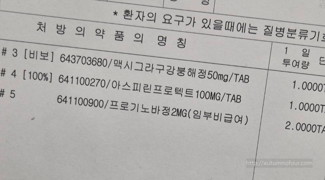 | 약국 | 36,310 | 프로기노바 60정, 아스피린 30정, 맥시그라 7정 |