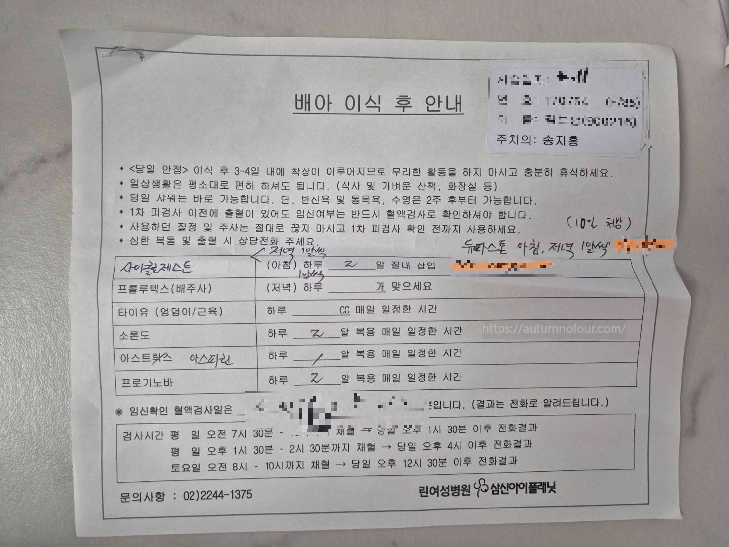 - 자궁 내막 두께 확인, 아르기닌 수액, 약처방, 채혈