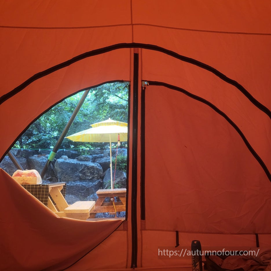 텐트 안밖으로 냉장고부터 식수대까지.