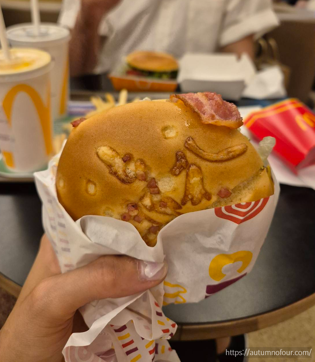 빵이 치즈빵 같은거여서 평소에 먹던 햄버거보다 더 맛있었다.
