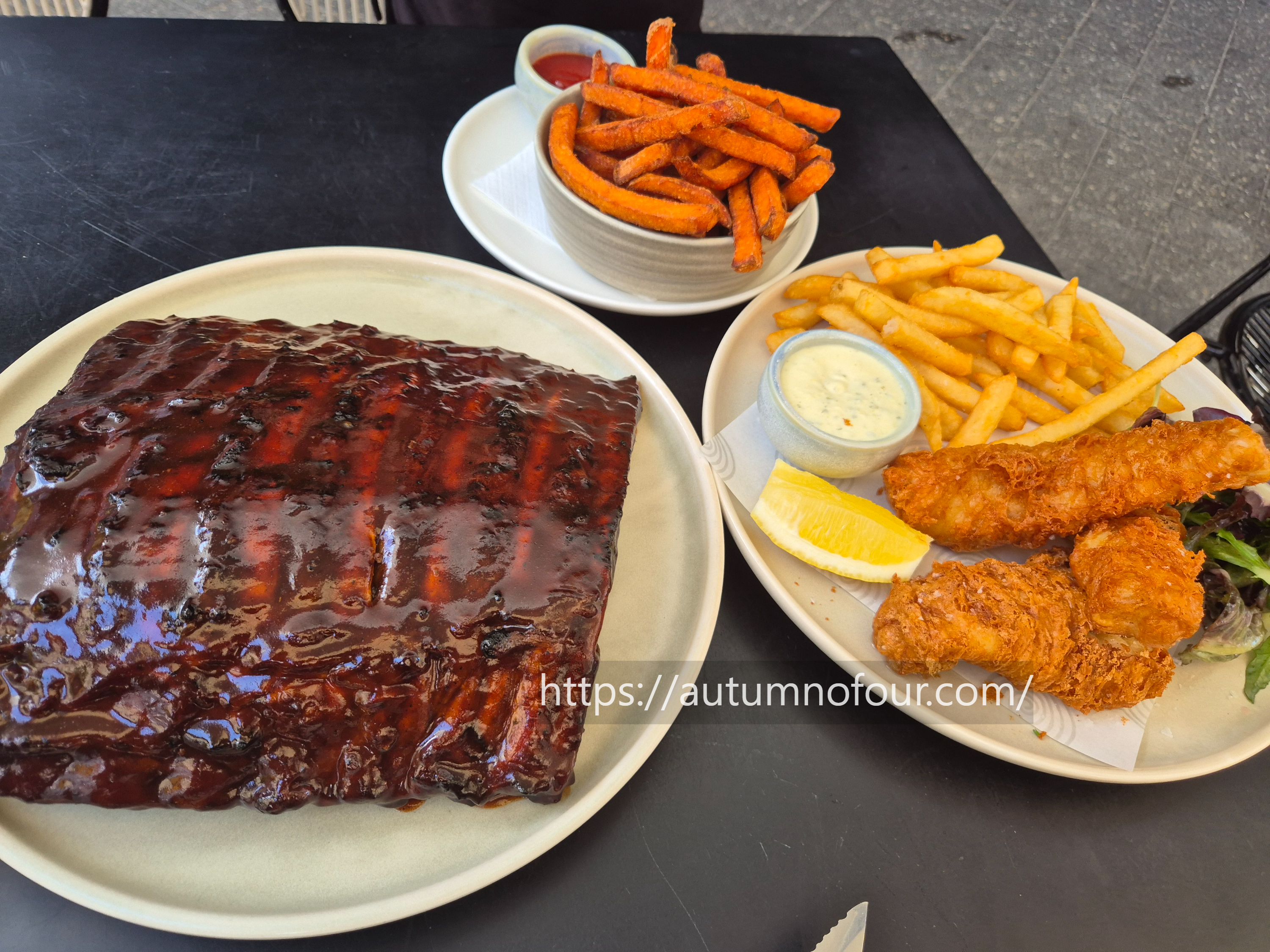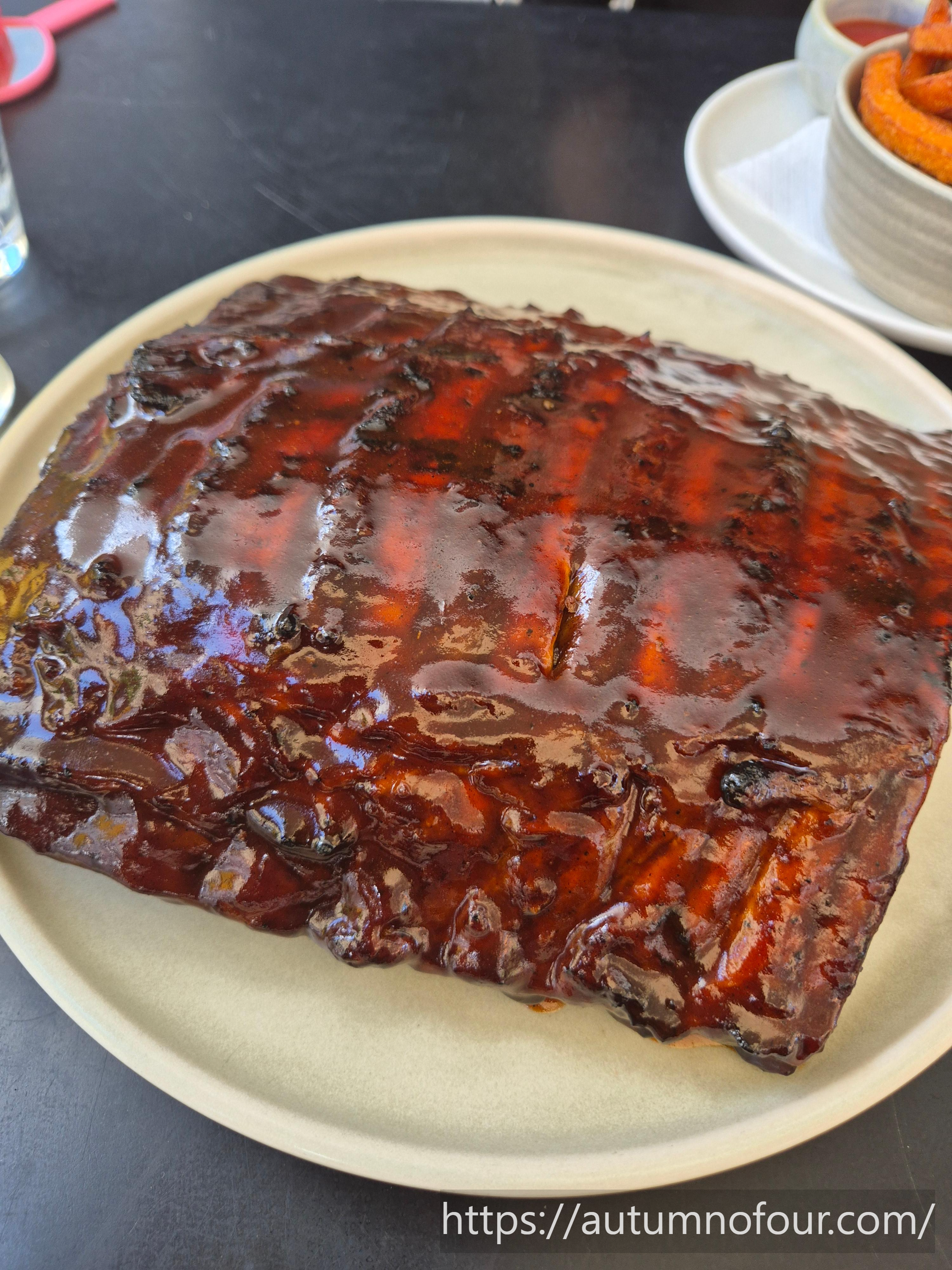 먼저 사진이 반도 담아내지 못하는 윤기 좔좔의 폭립.
